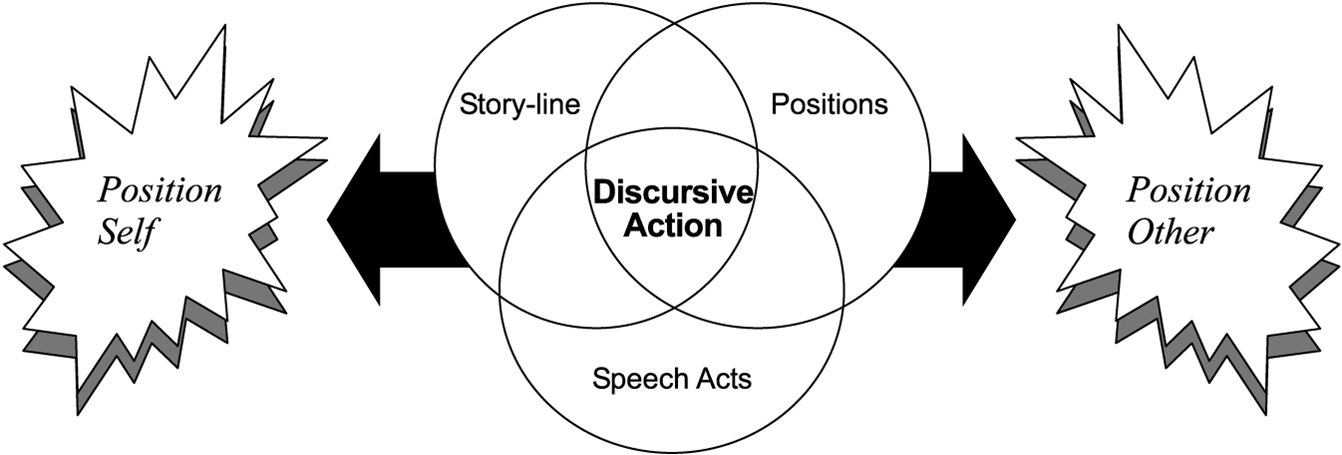 According to positioning theory, how people converse in any given situation can reveal the beliefs and practices they are acting upon; that is, the positions they are undertaking during the situation reflect their endorsement of certain “storylines” that frame how they make sense of the world or the topic on hand and act accordingly.  What a person says during a conversation reflects the role(s) s/he is taking on in any given situation, and the positionings people take during a conversation are their maneuverings between storylines, or discourses.  Positionings can be self-reflexive, where in a conversation a person positions himself or herself.  Or these positionings can be socially constructive, as people position others.  Positions can only be understood in relation to one another, and in the context of some discourse or storyline.  Positions can be generated from a discourse, and/or work towards shaping the context and thus the discourse within which one is positioned.  The analysis of positioning can also reveal the tensions and conflicts that occur within the conversation and thus the community of speakers.