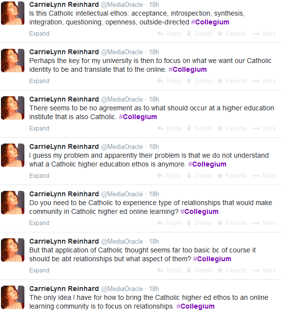 Since I am not Catholic, I was invited to attend Collegium in order to more fully understand just what this Catholic ethos is. The hope is that by experiencing more of this mission and identity, I would better understand and even develop ideas as to how to structure online learning to reflect this ethos. While there are numerous Catholic universities that offer online programs and courses, this focus on translating the ethos does not seem to have been as considered; thus, my greater knowledge of the ethos and how to do this could benefit more than just my university.