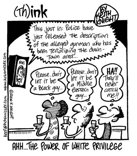 Any time a white person complains about a minority person by labeling that person as shiftless, unmotivated, inherently violent, or by ascribing some other trait to that individual, then the white person may be speaking from a place of privilege and may be demonstrating a misperception informed by and reinforced by cognitive dissonance. Unless that privileged person is truly a horrible person, someone with a psychopathic tendency who does not care about anyone other than his/her own self, then most likely the response is due to a feeling of shame, guilt, anger, or other negative emotion. Because, for the most part, people are good — people care for and are curious about other people and do not like to see others in pain. However, the systems of our world are structured in ways that keep us in negative emotional states because it benefits the few at the expense of the many. Some politicians, businesses, warmongers all benefit if the current system is maintained, keeping people apart rather than uniting them.