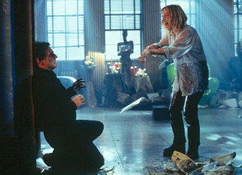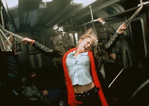 Now she is on a subway with two nuns and a priest — gotta be a joke in there somewhere…She approaches the priest, asks for Kiernan, and says no one can help her now that she is fucked. She rips off a nun’s cross and the train goes crazy on the tracks, throwing people all over the place. Paige suffers the lashes as the next stigmata, as the priest watches. Then things go soft white light and quiet as the lashes continue and end. Throughout the movie, we are watching Paige’s body as an object visited with either sexual pleasure or physical pain — but always as an object, as having things done to it, with no real agency. Only Kiernan has agency, and is thus the true subject of the film.