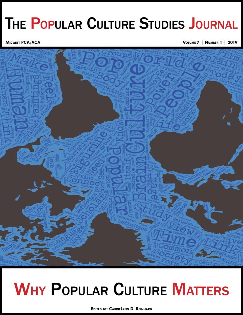 The editors of the Popular Culture Studies Journal are happy to announce the release of Vol. 7 No. 1 that features editorials on “why popular culture matters,” seven original research articles, and an plethora of reviews that includes movies, television shows, games, and theatrical performances.